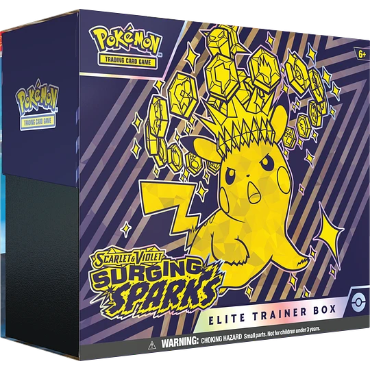 La Caja de Entrenador Élite de Escarlata y Púrpura-Chispas Fulgurantes de JCC Pokémon contiene: